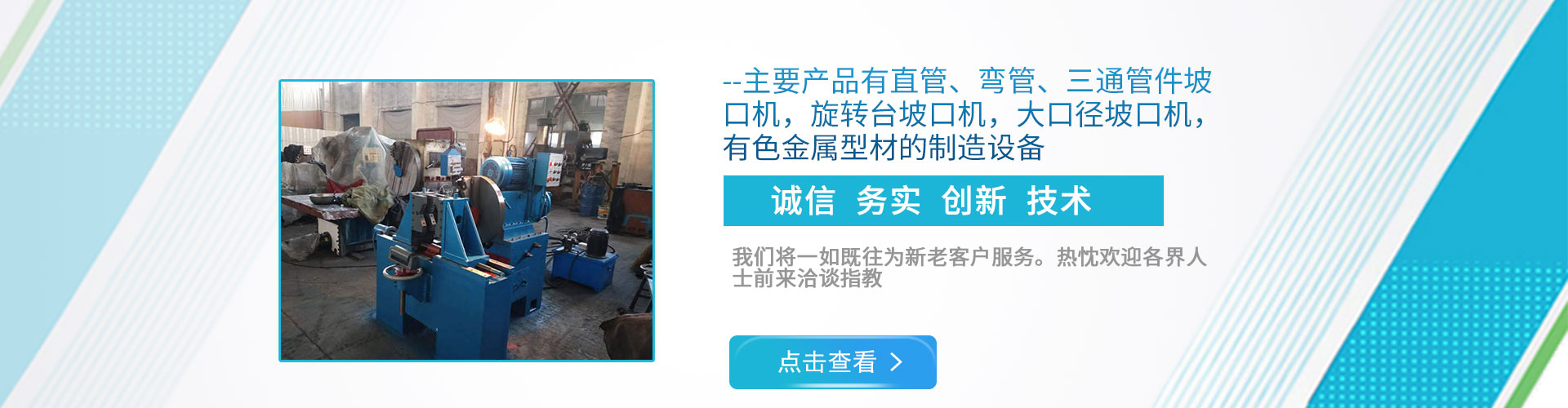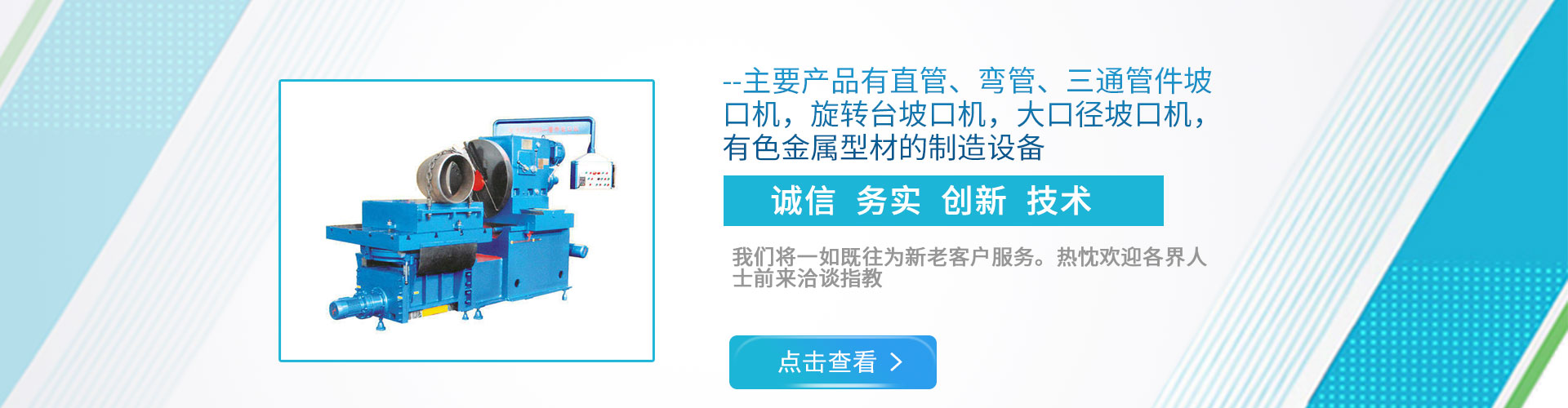 主要產品有大型管件的坡口機和鋸床以及金屬型材擠壓生產線整廠設備,有色金屬型材的制造設備